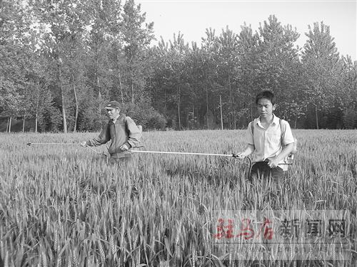 圖為新蔡縣陳店鎮(zhèn)郭廟村曹樓莊農(nóng)民正在進行“一噴三防”。記者 楊曉暉 通訊員 李 琨 劉亞宇 攝影報道