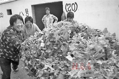圖為樂堂村村民在運紅薯苗。 記者 李