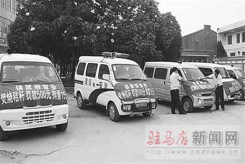 圖為驛城區水屯鎮的禁燒督查宣傳車準備下村宣傳。