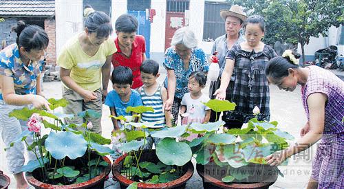 在劉輝家的樓頂、庭院,300多盆盛開的荷花,粉綠色的荷葉襯托著粉紅、純白、鵝黃色的花朵,一花一彩,一花一姿,吸引了很多村民來觀賞。村民們贊嘆,原來只在電視上看過公園里有這樣好看的荷花,沒想到咱們村的劉輝也把荷花養得和電視上的一樣漂亮。村民們都夸劉輝有本事。