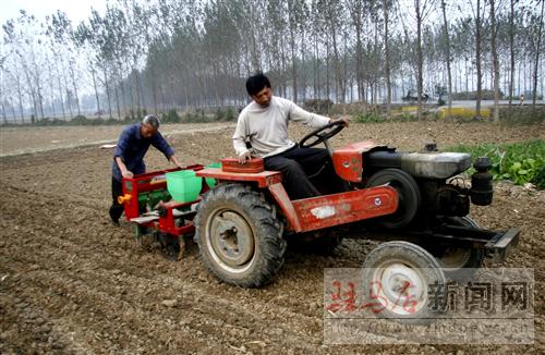 驛城區(qū)水屯鎮(zhèn)農(nóng)民正忙著播種小麥。