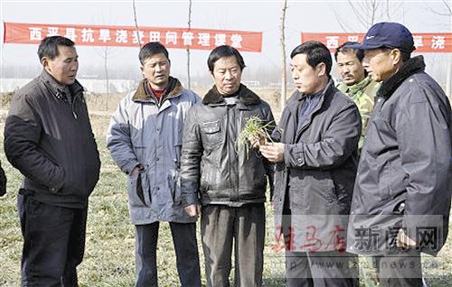 近日,西平縣抽調20多名農技專家,深入全縣田間地頭指導群眾科學抗旱。圖為該縣農技專家在為群眾講解抗旱澆麥和小麥春季管理技術。記者 丁 振 通訊員 胡軍華 攝影報道