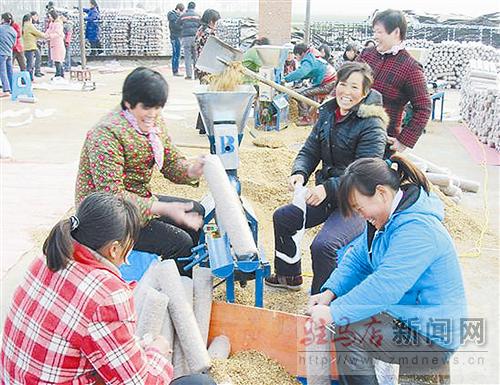 春節臨近,驛城區胡廟鄉葉莊村迎來了本村招商引資項目——155畝食用菌種植園區投產,讓該村農民在農閑之時足不出村就可就業。圖為該村農民在食用菌種植園區內分裝食用菌菌種。 通訊員 殷建軍 攝