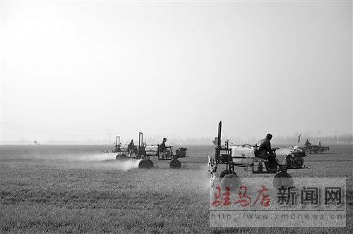 為農民植保專業合作社隊員在進行“一噴三防”作業。 記者 郭連山 攝