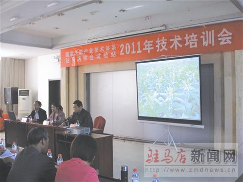近日,國家芝麻產業技術體系駐馬店綜合試驗站舉辦了2011年芝麻技術培訓會。國家芝麻產業技術體系駐馬店綜合試驗站站長、駐馬店市農科院院長楊清嶺研究員主持會議,國家芝麻產業技術體系崗位科學家、河南省農業科學院芝麻高產栽培專家衛雙玲研究員,國家芝麻產業技術體系病蟲害防控研究室主任、河南省農業科學院病蟲草害防控專家劉紅彥博士分別就芝麻高產栽培、病蟲害防控等技術進行了專題講座,并現場回答了聽眾提問。圖為培訓會現場。記者 張 靜 攝