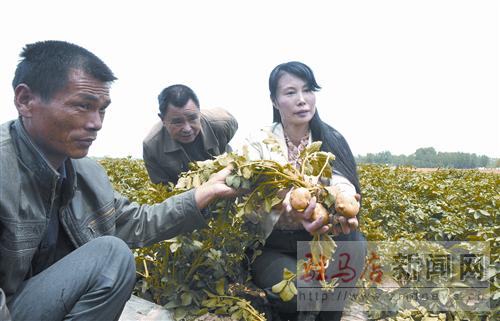 日前,市民金瑞(右)種植的土豆園開園。她去年在驛城區馬莊村承包500多畝土地,專門為臺資企業徐福記食品有限公司按訂單種植冬瓜、土豆。目前,我市通過項目建設拉動了地方經濟發展,城市居民到農村承包土地種植經濟作物,使農村土地實現了多元化經營。記者 劉 超 攝