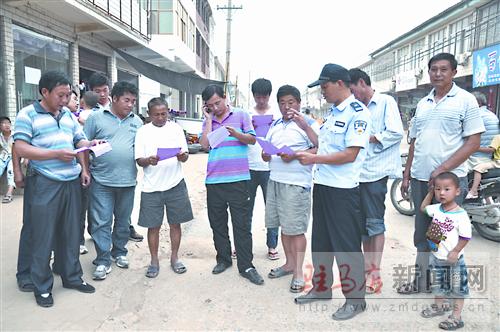 在6月26日國際禁毒日,新蔡縣公安局韓集派出所民警到轄區對留守兒童進行禁毒法律知識教育。記者 張 靜 通訊員 李 軍 攝影報道