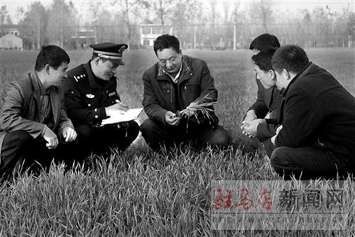為加強麥田前期管理,近日,新蔡縣公安局磚店派出所聘請農業專家為轄區群眾講解小麥安全越冬知識。記者 高圓圓 通訊員李 軍 攝影報道