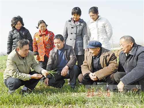 為促進冬季小麥健康生長,實現麥苗安全越冬,正陽縣積極引導農民加強當前麥田管理工作,并抽調農技人員深入田間地頭現場指導群眾進行冬季小麥管理和科學防治病蟲害。圖為