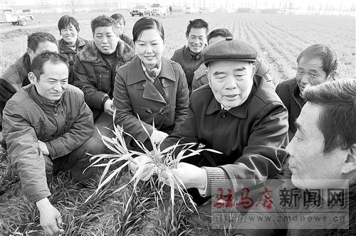農業專家張自亮在地頭針對小麥發生的病蟲害現場支招。