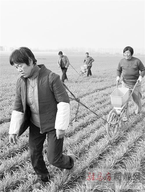 在專家的指導下,李莊村村民通過追肥管理實現小麥強苗壯苗。
