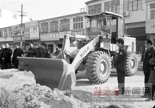 近日,正陽縣永興鎮組織機關干部、派出所民警、工商所人員積極配合該縣公路局進行街道清障。進入11月份以來,該鎮采取多種有效措施大力整治街道環境衛生,先后拆除板房6處、簡易棚子12處、治理流動攤點102個,規劃布匹、肉類、水果等專賣市場6個,清理街道垃圾、路障61處。通訊員 張 華 攝