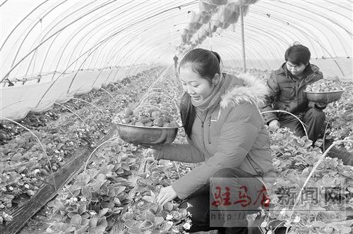 摘要: 12月22日,記者在驛城區劉閣街道辦事處十字路村天中生態農業園看到,種植戶正在20畝無公害草莓園采摘已經成熟的草莓。據種植戶介紹,由于今年是頭茬,草莓又大又紅,其味道非??煽凇S浾?李小龍 攝