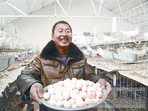 “我現在主要是對外出售種鴿和鴿子蛋,種鴿一對110元,鴿子蛋一個3元,一天600枚鴿子蛋,僅鴿子蛋一項月收入就5萬多元。”李德生說。