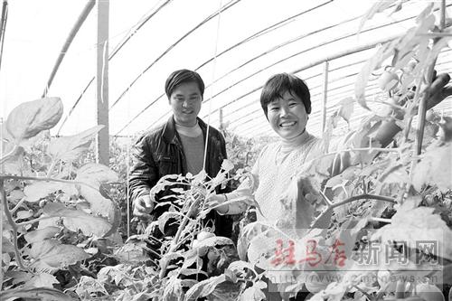 近日,驛城區順河街道辦事處小李莊農民在大棚內管理西紅柿。近年來,該村注重發展設施農業,建設連棟大棚,經濟效益十分可觀。 記者 郭連山 弓華靜 攝影報道