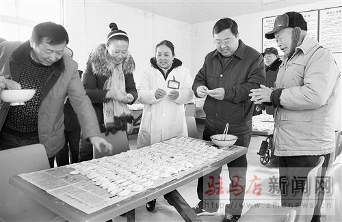 摘要: 12月21日,驛城區(qū)順河街道辦事處組織機關(guān)干部到敬老院開展冬至慰問活動,將一聲聲祝福、一份份愛心送給老人。圖為該辦事處黨工委負責(zé)同志與老人一起包餃子。記者 李