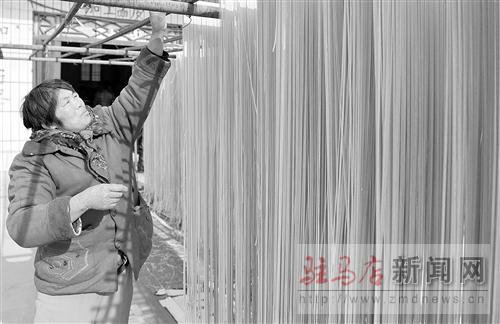 近日,上蔡縣西洪鄉南董村農民正在把加工好的面條進行晾曬?,F在農忙季節已經過去了,農業生產進入了休閑期,但是在各地農村擁有農產品加工機械的人們并沒有閑著,他們的磨面機、面條機等加工機械正在緊張地忙活著。記者 郭連山 攝