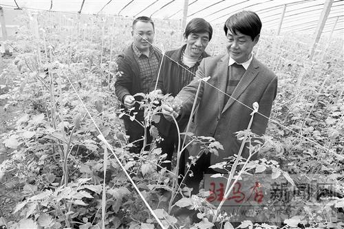 近日,驛城區順河街道辦事處小陳村的18座蔬菜大棚里生機盎然,為了消除春季病蟲害,提高蔬菜產量,該村專門從山東壽光聘請技術人員對菜農進行技術指導。 記者 楊曉暉 攝