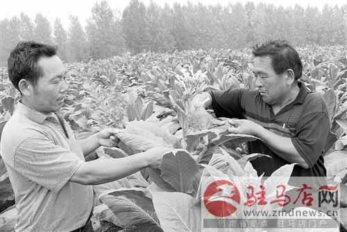 近日,泌陽縣煙草分公司技術人員在該縣高邑鄉王灣村指導煙農打頂抹杈,有效提高煙葉產量和質量。記者 唐