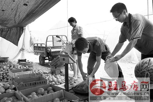 摘要: 6月29日,市民在位于驛城區(qū)順河街道辦事處的欣農種植農民專業(yè)合作社大棚前選購西紅柿。該合作社由4名返鄉(xiāng)大學生自主創(chuàng)辦,流轉土地50余畝建大棚15座。該合作社2012年9月成立,目前已初見效益。 記者 李
