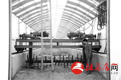 近期,上蔡縣榮豐養殖農牧開發有限公司積極推行科學、綠色、環保的生產模式,技術人員研發出用豬糞、沼氣殘渣制造有機肥料技術,生產出的有機肥料供應給附近的村子和蔬菜種植基地。圖為有機肥料生產車間。 記者 張 朝 攝