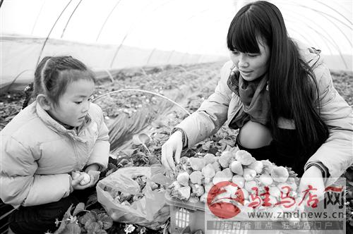 近日,新蔡縣居民高嬙帶著孩子來到關津鄉高灣村草莓大棚采摘草莓。高灣村是新蔡縣草莓種植專業村,建有草莓大棚30座。春節臨近,大棚草莓陸續成熟,每畝大棚草莓可收入3萬多元。記者 劉付明 通訊員 趙學風 攝影報道
