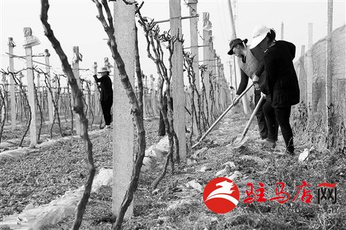 日前,在驛城區諸市鎮相園無公害葡萄采摘基地,園藝師傅在整理葡萄田。該基地是由驛城區富強瓜果蔬菜種植農民專業合作社興建,2009年引進我國自主產權一年結三茬果的葡萄新品種,輻射帶動數百家農戶走上致富路。 記者 張 朝 攝