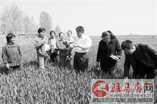日前,市農業局組織人員和農業專家來到對口幫扶村確山縣任店鎮陳門店村開展送技術、送信息、送農資、送文化、送溫暖活動。圖為農業專家在向村民講解麥田管理和病蟲害防治知識。記者 王朝朝 攝