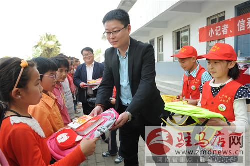 當(dāng)天下午,由天中晚報社小記者部發(fā)起的“關(guān)愛留守兒童,好書送希望”活動在這里舉行。天中晚報社領(lǐng)導(dǎo)和小記者們代表及信泰人壽保險股份有限公司駐馬店中心支公司相關(guān)負責(zé)人來到這里,為孩子們送來書包、書籍等。