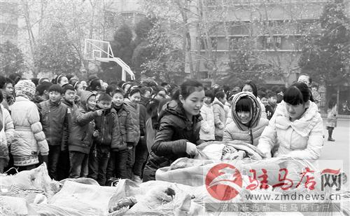日前,市一高的學生們和泌陽縣春水鎮春蕾學校的留守兒童聚集在一起,舉行了暖冬手拉手活動。