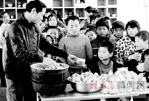日前的一天上午,新蔡縣特殊教育學校的聾啞兒童正在開心地吃課間營養加餐牛奶、面包、雞蛋。黨的十八大會議提出支持特殊教育,讓每個孩子都能成為有用人才,該校從改善課間營養餐、提高伙食標準、給孩子們安裝空調、開展特色教育等入手,讓孩子們安全過冬,感受到黨和政府的溫暖和關懷。記者 劉付明 通訊員 趙學風 攝影報道