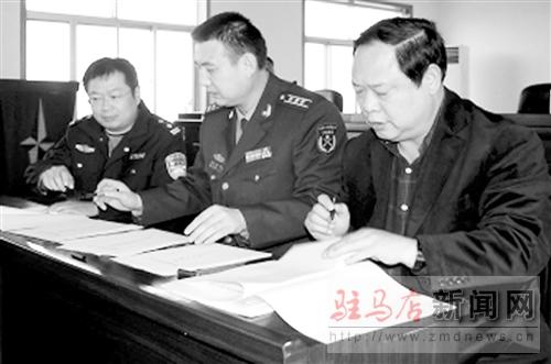 以廉潔樹形象、以廉潔保質量, 近日,驛城區征兵工作拉開序幕。為了保證工作的公開、透明,驛城區征兵辦實行了《廉潔征兵監督卡》制度,制定下發了《廉潔征兵工作10條規定》,自覺接受群眾的監督,以公開促公正。圖為驛城區征兵領導小組成員在簽訂廉潔征兵責任書。 記者 鄭付生 通訊員 劉 韜 攝影報道