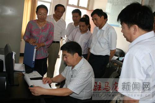 駐馬店新聞網訊(通訊員 王慧娟 蘇文明)近日,駐馬店市人口計生委副主任王偉一行到驛城區老街辦事處、水屯鎮調研計生臺賬規范化整理、鄉所村室標示化建設及創國優準備情況。圖為驛城區政府副區長秦峰、區人口計生委主任連中記陪同王主任在老街辦事處鄧瓦房村查看臺賬整理和微機管理情況。