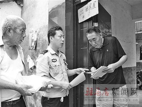 最近,駐馬店市公安局驛城分局加大了對轄區流動人口和暫住人口的管理力度,對流動人口、暫住人口逐人登記備案。圖為驛城公安分局橡林派出所民警郭群力,在轄區向居民宣傳對流動人口、暫住人口進行登記的意義,并發放《治安責任保證書》。