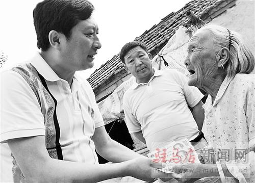 驛城區劉閣辦事處周樓村88歲高齡的趙花雨老人接過300元愛心捐款,感動得熱淚盈眶(如圖)。