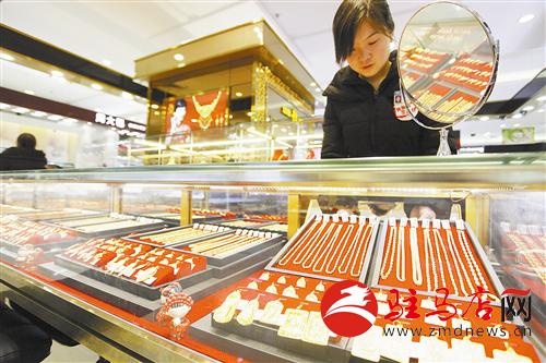 3月2日,大商新瑪特駐馬店總店一黃金專柜工作人員在整理黃金飾品。據日前中國黃金協會公布的數據顯示,2013年中國黃金消費量達1176.4噸,已經超過印度,成為全球最大的黃金消費國。 記者 吳 波 攝