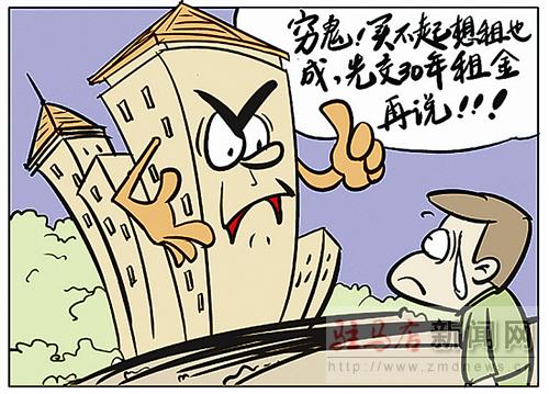 摘要: □丫 丫/文 李 亮/圖 近日,陜西省洋縣房管局要求廉租房租戶必須一次性交納30年租金,方可入住廉租房,導(dǎo)致部分租戶無力負(fù)擔(dān)。此事經(jīng)媒體報(bào)道后,當(dāng)?shù)亟型A诉@一做法。(據(jù)《三秦都市報(bào)》)