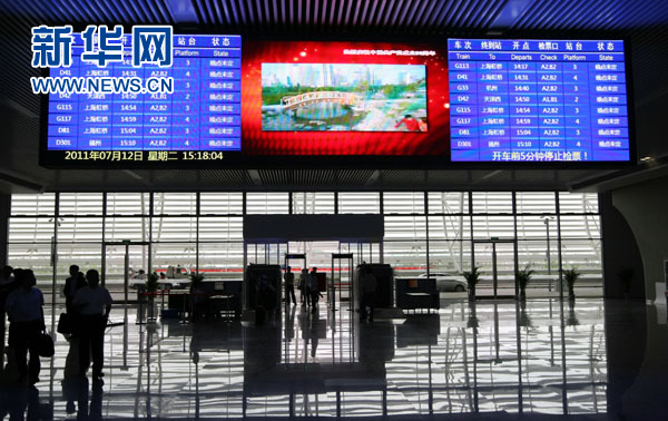 資料圖:7月12日15時許,京滬高鐵無錫東站的大屏幕上顯示多輛高鐵列車晚點信息。 當日11時,京滬高鐵宿州段因供電設備故障,造成部分列車晚點。經全力搶修,13時故障處理完畢。新華社發(宦瑋 攝)