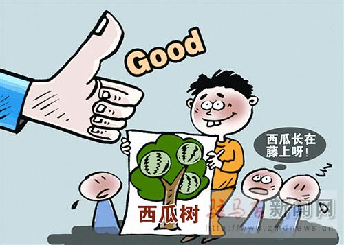 摘要: □春 鳴 日前,教小學(xué)三年級的胡老師發(fā)微博曬自己一名學(xué)生的作文,標(biāo)題是“我愛家鄉(xiāng)的西瓜樹”,第一句就是“我們家樓下種了一棵西瓜樹”。作文的結(jié)尾批注:西瓜不長在樹上。不過,胡老