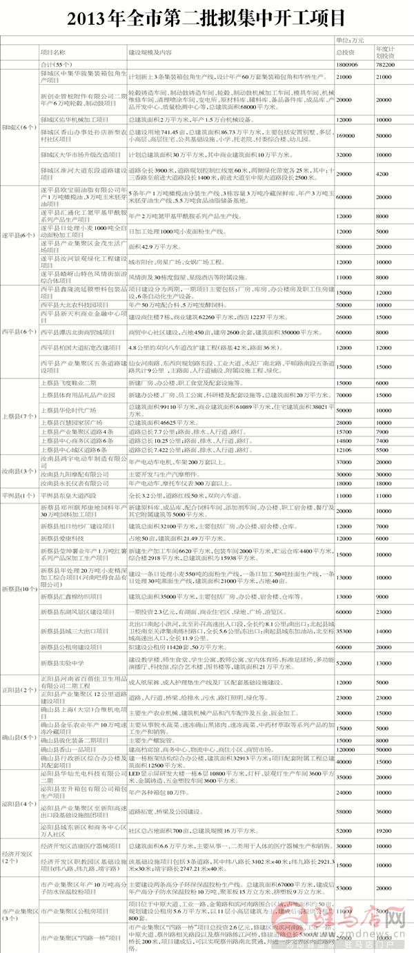 為進一步加大項目建設推進力度,市委、市政府決定抓住麥收后土地騰空的有利時機,全面推動一批億元以上重點項目于6月份集中開工建設。經各縣區認真對接、謀劃,擬定在6月份集中開工億元以上重點項目55個,總投資180.1億元,2013年計劃投資78.2億元,涉及裝備制造、輕紡、食品加工、商貿物流、基礎設施建設等領域。其中,億元以上工業項目27個,總投資67.1億元,年度計劃投資34億元。