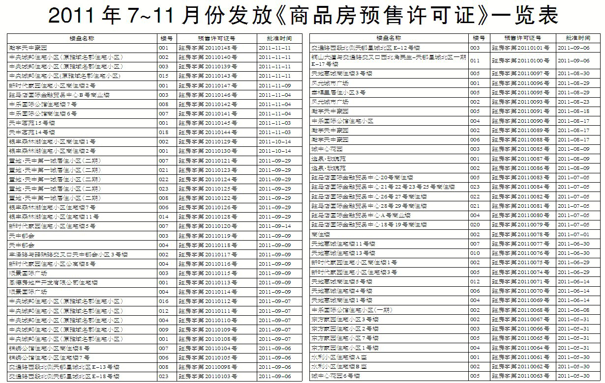駐馬店市住房管理中心《商品房預(yù)售許可證》公示