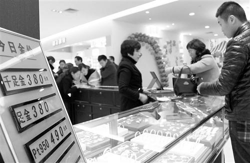 浙江省寧波市一家商場慶祝開業(yè),推出千足金380元/克的價格,引來眾多市民搶購(2013年1月12日攝)。