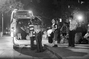 摘要: 8月4日晚9時,西站北廣場馬路對面中裕大廈后的巷子內,旅客交完錢后坐在臺階上等車。 當晚9時30分,“黑長途車”駛入巷子內,“售票點”人員(圖片最下方)招呼乘客上車。 每天