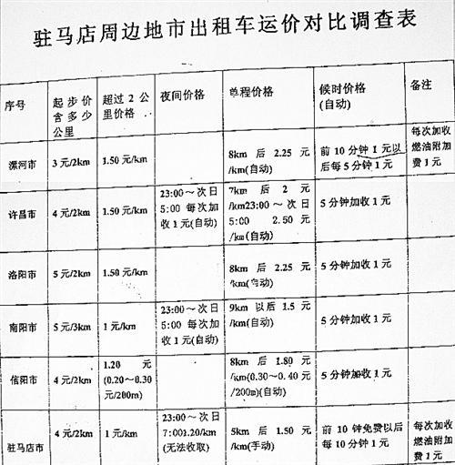 據(jù)了解,此次出租車(chē)運(yùn)價(jià)調(diào)整只有一套方案。如按照此方案調(diào)整,我市出租車(chē)的起步價(jià)5元/2公里,超出2公里每公里1.4元。調(diào)整后,我市的出租車(chē)運(yùn)價(jià)趕超漯河、南陽(yáng)、信陽(yáng)等城市,進(jìn)入全省前列。