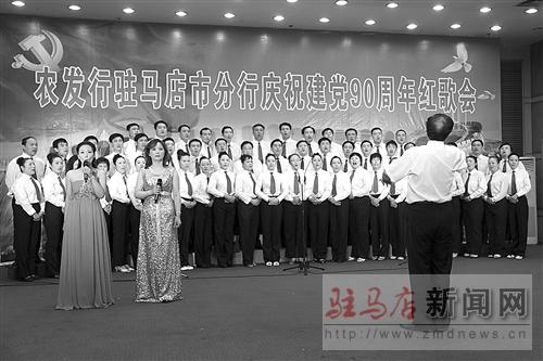 摘要: 為紀(jì)念黨的90華誕,農(nóng)發(fā)行駐馬店市分行組織開(kāi)展了系列慶祝活動(dòng),全面回顧黨的光輝歷程,引導(dǎo)廣大員工了解、熱愛(ài)、擁護(hù)黨,繼承和發(fā)揚(yáng)黨的光榮傳統(tǒng)。圖為該行舉辦的“紅色旋律,唱響中國(guó)”主題紅歌會(huì)