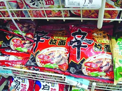 南京一家大型超市,辛拉面重新上架。 張?bào)?攝