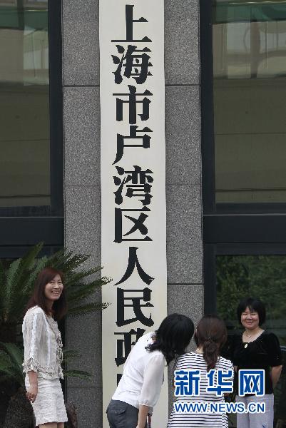 6月8日,幾位市民正在上海市盧灣區人民政府門前留影。近日,上海市盧灣、黃浦兩區行政區劃調整方案已獲國務院正式批復,黃浦區、盧灣區兩區建制撤銷,設立新的黃浦區。“撤二并一”相關程序仍在進行中。新華社記者 裴鑫 攝