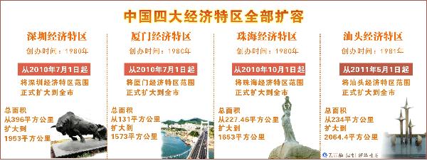 新華社圖表,北京 ,2011年5月1日 圖表:中國四大經濟特區全部擴容 新華社發