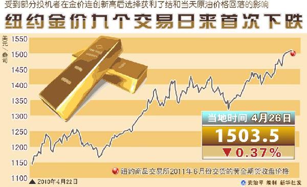 摘要: 圖表:紐約金價九個交易日來首次下跌 新華社發(fā)