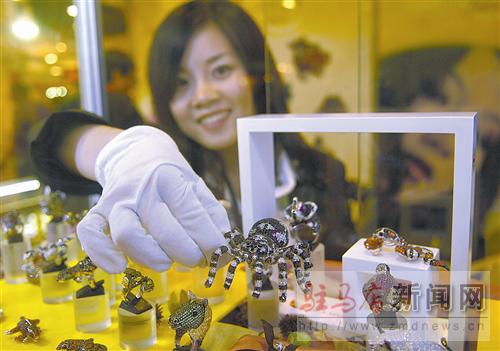 摘要: 4月16日,商家在第五屆杭州國際珠寶首飾展覽會上展示一件設計成黑蜘蛛造型的首飾。近日,正在浙江杭州舉行的第五屆國際珠寶首飾展覽會吸引300多家中外企業(yè)參展。據(jù)4月15日國家統(tǒng)計局發(fā)布的國民經(jīng)濟運行數(shù)據(jù)顯示